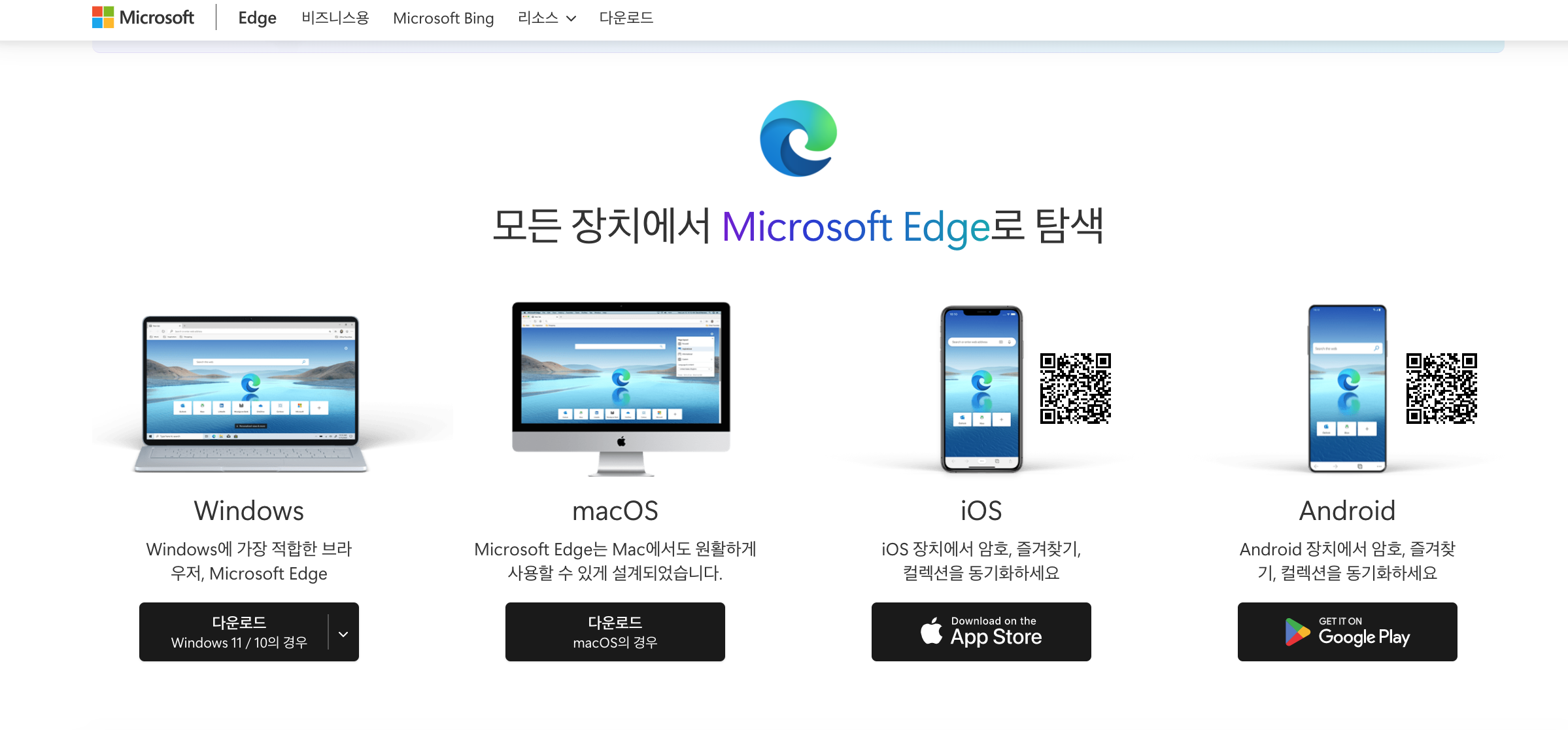 Bing AI의 사용을 신청하기 위해선 먼저 마이크로소프트의 엣지(Edge) 설치가 필요합니다. 참고로 Bing AI의 경우 엣지 브라우저 외 다른 브라우저(익스플로러, 크롬, 사파리 등)들로는 실행이 불가능합니다.