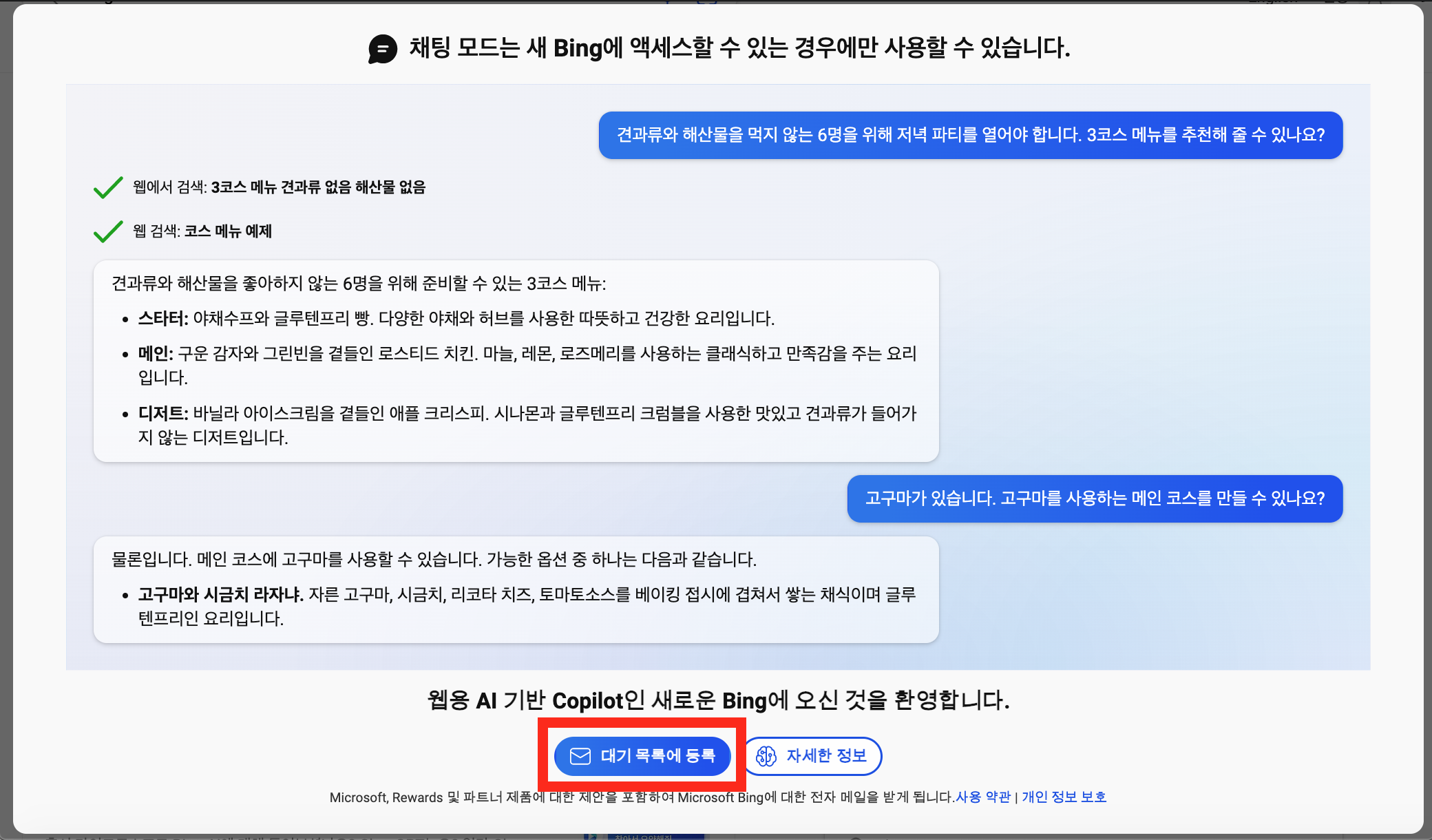 - 이후 뜨는 팝업창에서 "대기 목록에 등록" 버튼을 누릅니다.